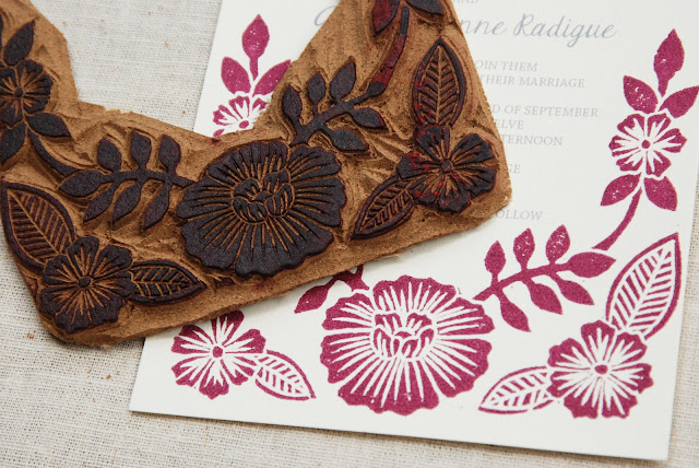 It's been a very busy few weeks around here, but I took a break from the printing and packaging last week to work on these new block printed wedding invitations.